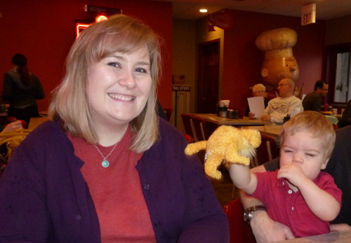 This weekend we went up to Auntie Kara's to celebrate her birthday! Grandma Gail and Grandpa Kevin were there, too. We had lots and lots of fun. We went out for breakfast and I had blueberry pancakes.