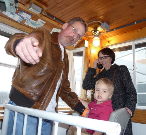 On the tugboat with Grandpa Kevin and Grandma Gail.