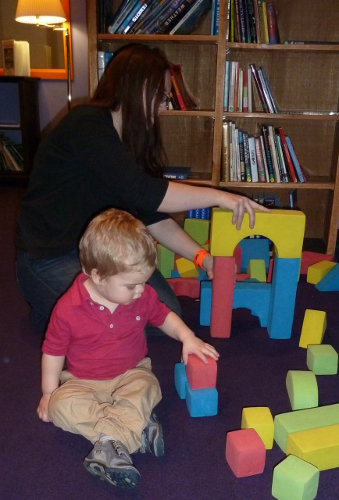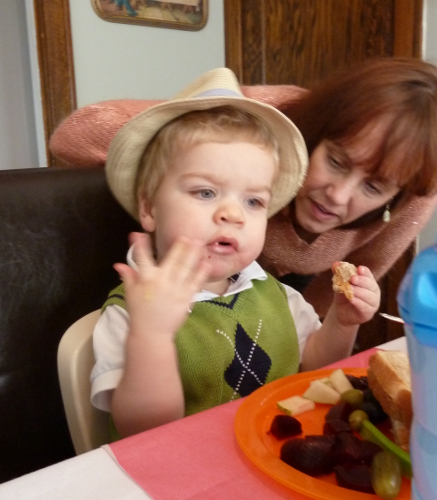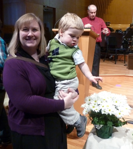 On Sunday, Great-grandma Muriel, Great-grandpa Les and Aunt Nancy came to visit. We all went to Auntie Kara and Uncle Josh's church. I sat with the adults for awhile and listened to the music, but when it was mostly talking it wasn't as much fun, so I went to the kid's room to play.