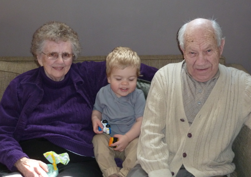 Me with Great-grandpa Les and Great-grandma Muriel.