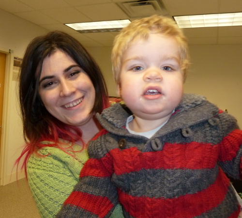 Mommy took me to work to meet her friend Pelly. We brought Duke, too - but he had to stay outside.