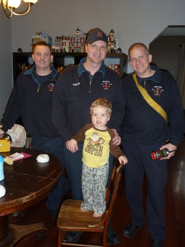 And then there was some excitement when the smoke alarms kept going off even though there was no smoke. Daddy called the fire department and they came to check for carbon monoxide. The house was all clear, so nothing to worry about. Daddy is going to get some new smoke and CO detectors.