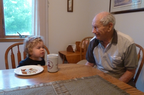 We spent the night and in the morning I had breakfast with Great-grandma Muriel and Great-grandpa Les.