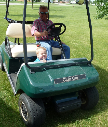 We had a lot of fun on Thursday. We rode in the golf cart and played in the yard.