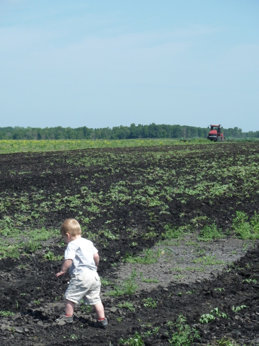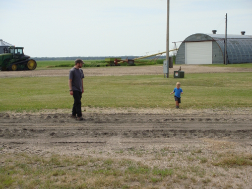 The next morning Bob was out working, so I played in the house for a little while, then we went out to ride in the tractor.