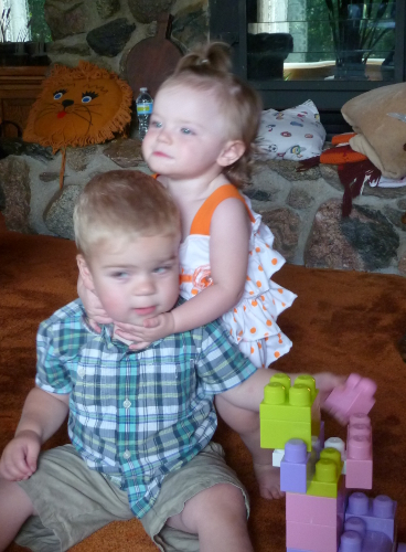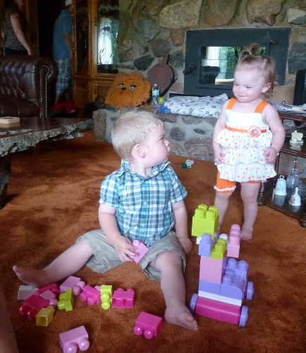 Finally we got to Grandpa Al and Grandma Wynne's house. Duke was really happy to see us - and so were Grandma and Grandpa. I played with Grandpa while Papa unloaded the car and set up my bed.
