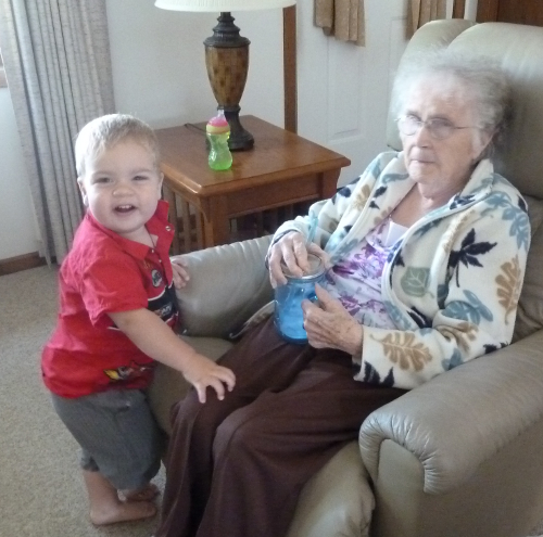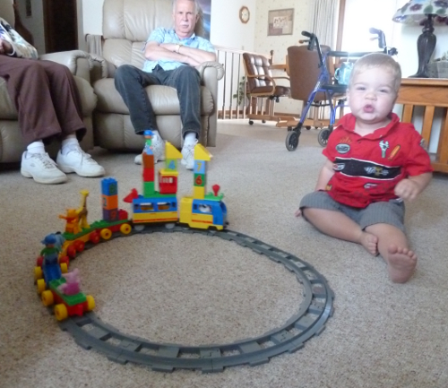 Sunday afternoon we went to see Great-grandma Dorothy. I showed her and Uncle David my LEGO train.