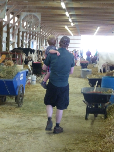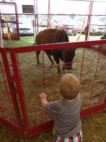 I also saw a lot of tractors, but Papa said I couldn't ride in them because they weren't Bob's. We had fun at the fair, but it was hot, so we went home. I tried to take a nap, but I wasn't able to sleep because I wanted to play with my trains.