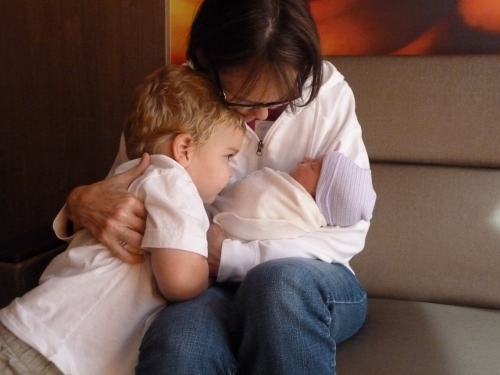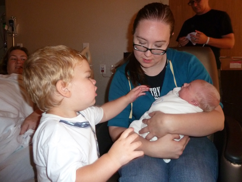 Mommy couldn't wait to see the baby, so she went see Auntie Kara before Freya was even born. So did GG and Grandpa Kevin. Daddy and I went up later and brought Great-grandma Muriel and Great-grandpa Les with us.
