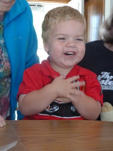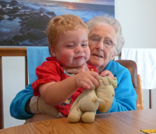 Playing at Great-grandma Dorothy's 91st birthday party.