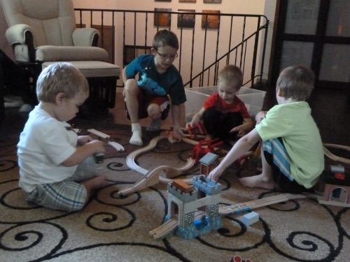 Great-grandma Darlene, Max, and Bradley came over to Grandma Wynne's on Sunday. Max and I played with all of my toys.