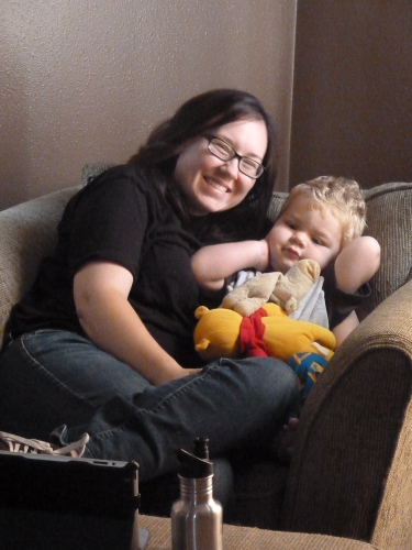 I was a little sick on Sunday, with a runny nose and a cough - so I watched cartoons with Daddy and Grandma Wynne. Mommy went to see baby Freya and help Auntie Kara and Uncle Josh.