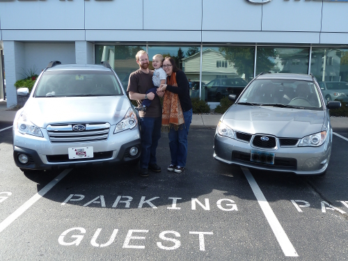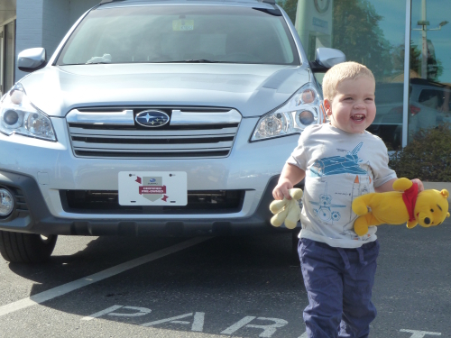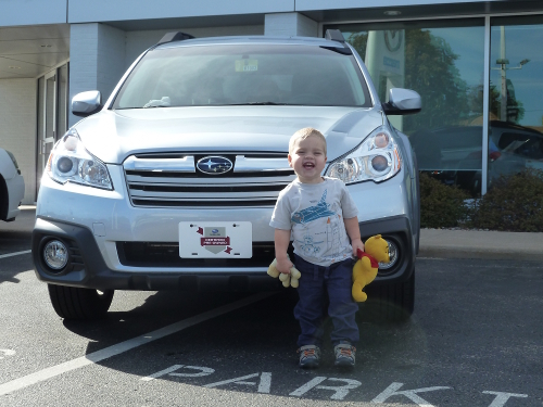 This week we bought a new (to us) car! Mommy and Daddy traded the Impreza and the van for a slightly used 2013 Outback.