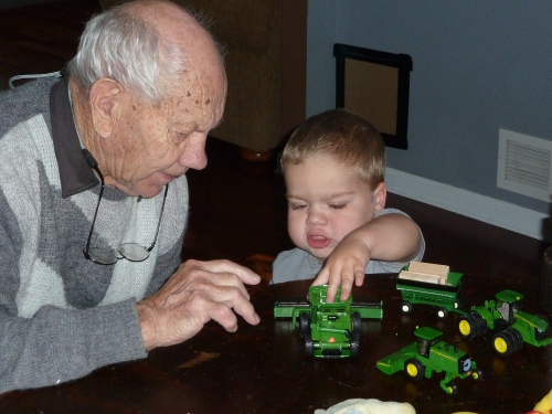 I stayed in the house all morning. Great-grandpa Les and I did some farming.