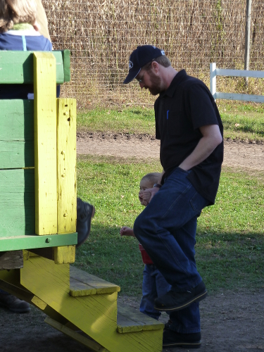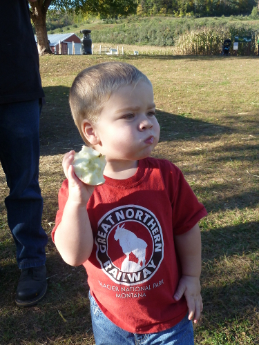 Sunday afternoon Daddy and I went home, picked up Mommy and went to the apple orchard again. We rode on the wagon and picked apples and had so much fun. It was a beautiful day to be outside.