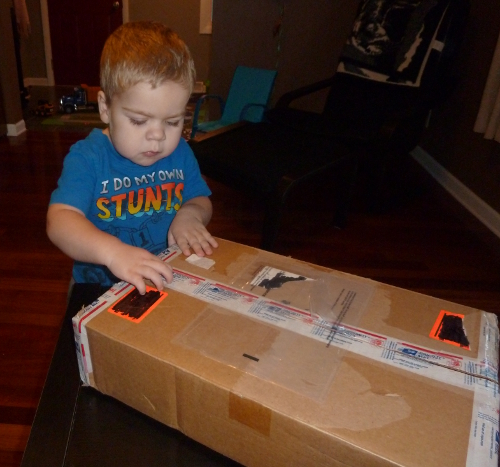 A mysterious box arrived on Thursday. Daddy let me open it.