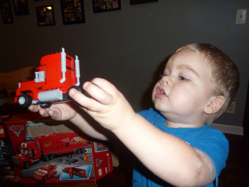 Grandpa Al came to visit me on Tuesday. I was still hurting a lot then. We played with my trucks and watched Winnie the Pooh.