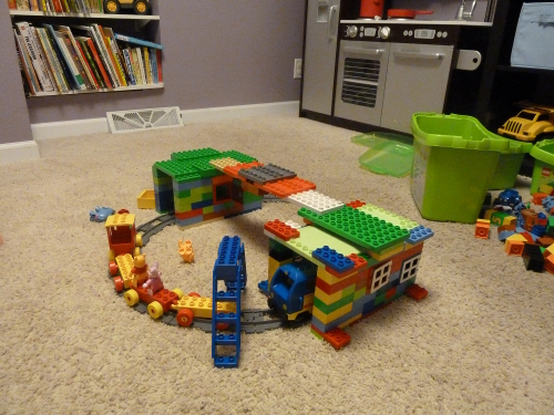 Mommy's friend Emily came over on Friday to learn how to make some fancy French dessert, and she played with me and my LEGO train, too.