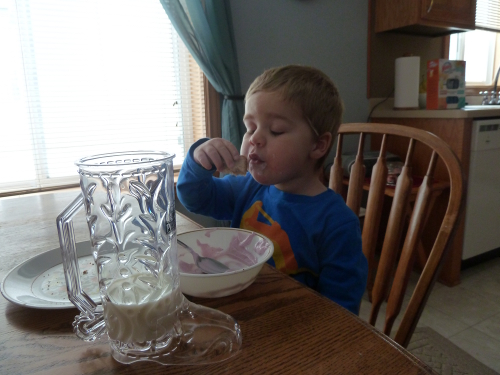 Sunday morning there was snow everywhere! I spent the morning playing with my train and my barn and refused to take a nap, even though I was very tired.