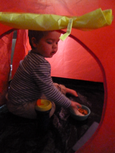 And my tent reappeared this week, so I have been playing with it again. I really like to crawl in with a snack and watch some Curious George.