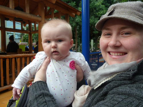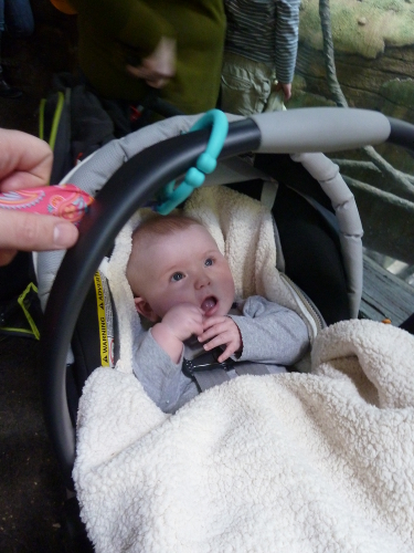Baby Freya is excited to see the monkeys, too.