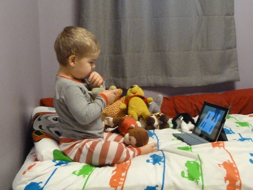 I was supposed to go to school on Friday, but I had a fever Thursday night. Daddy stayed home with me in the morning so Mommy could go to class.