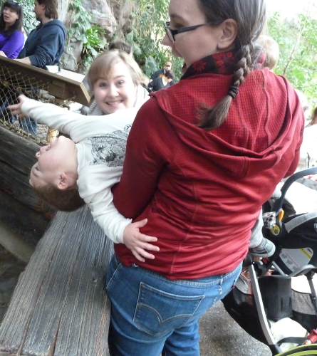 Mommy and Auntie Kara pretending to throw me to the otters!