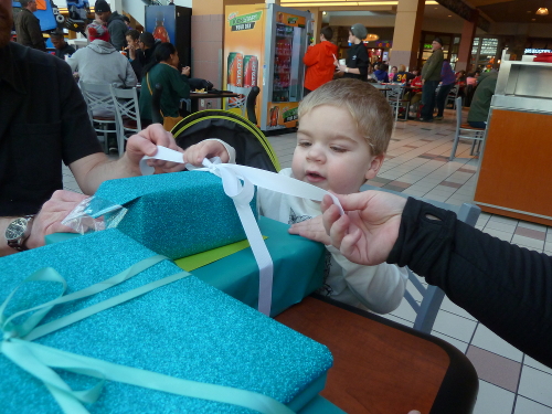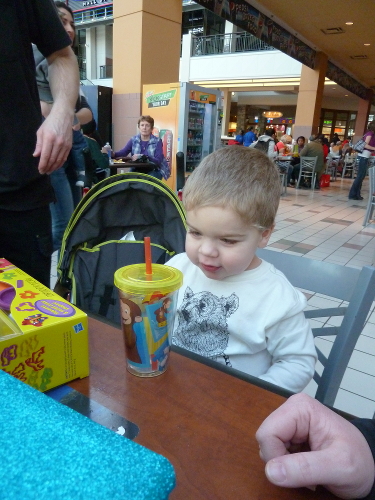 After the Zoo we went to the Mall. I tried some new food, and we looked at some fun toys I didn't get, and I got to open some birthday presents.