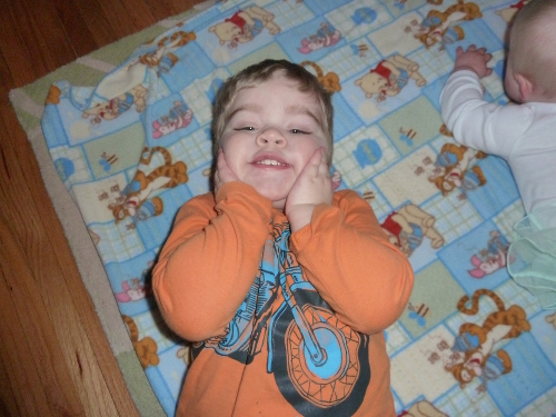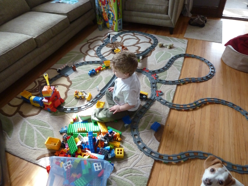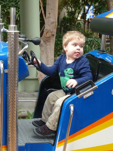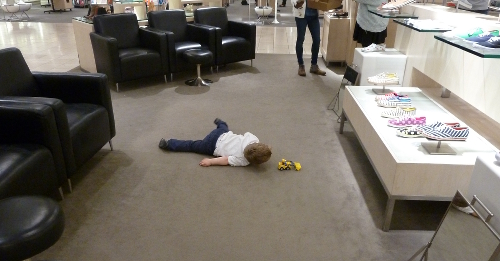 Playing with my new LEGO toy while Mommy and Auntie Kara shop for shoes.