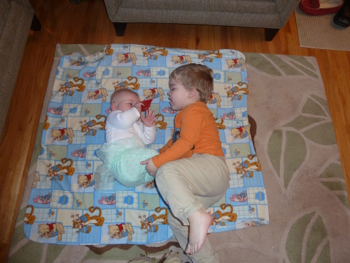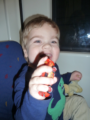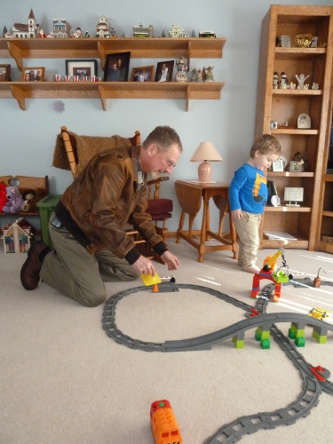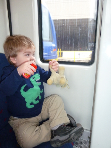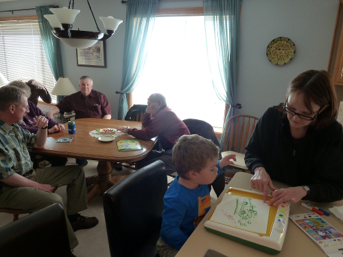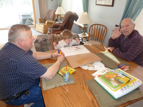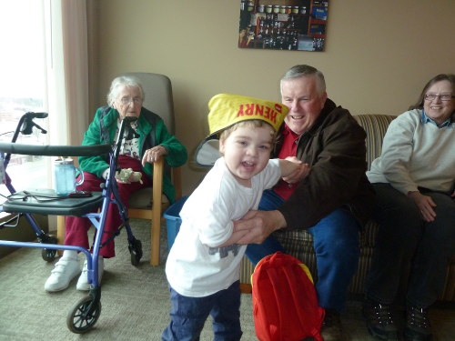 This past week Mommy and I were on spring break, so we left Daddy and Duke at home and went visiting. We stayed with Kara and Josh and Freya, with Grandpa Al and Grandma Wynne, and with Great-grandpa Les and Great-grandma Muriel. We saw lots of other people, including Grandma Gail and Grandpa Kevin, Great-grandma Dorothy, Uncle David, Aunt Diane, and Uncle Neil. We had a lot of fun. But we missed Daddy.