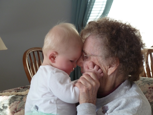 Freya with Great-grandpa Les and Great-grandma Muriel.