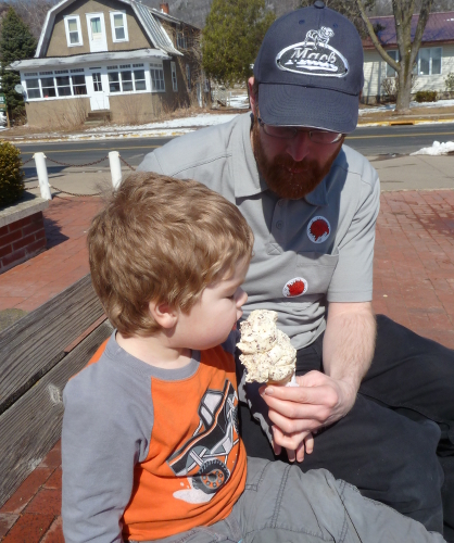 When we left the eagles we went across the river and stopped for some ice cream. Daddy offered me his chocolate chip ice cream cone. He didn't think I would try it, but I did. Mommy ate some too. Daddy was sad he had to share because the ice cream was so good.