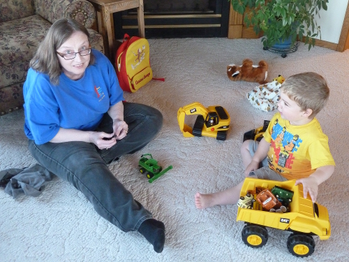 Playing with Grandma Wynne, waiting for Bob to come home.