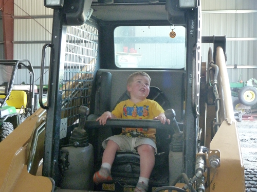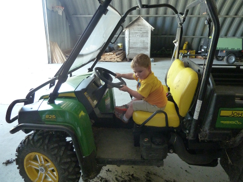 Then I finally got what I have been asking for every morning for months: we went to Bob's house to ride the tractors and the Gator and the loader and the trucks!