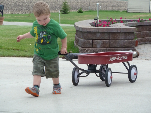 Grandpa Al brought us home in the afternoon and I found out Mommy planted a garden while we were gone! Now I can help Mommy garden, too! Duke was happy to see us, and Grandpa stayed to play with me for a while. Daddy gave me a bath and Mommy made pizza for supper. I had a great week! And I'm already excited to ride Bob''s tractor again.