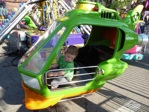 On Wednesday we went to a fair for a little fun. I had a giant pickle, played a game and won a prize, rode a four-wheeler, navigated an obstacle course, piloted a helicopter, and rode a dragon train. I was having so much fun I didn't want to go home.