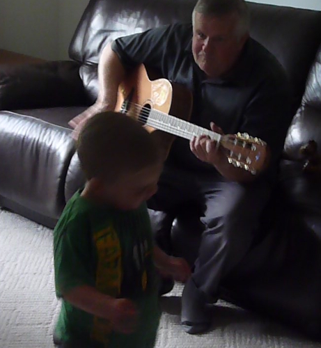I was getting pretty tired and cranky by mid-afternoon with no nap, so Daddy said we had to go. I fell asleep in the car. Back at Grandma Wynne's I slept some more, until Daddy woke me up to have supper. And then Grandpa Al came home and he played his guitar for me so I could dance.