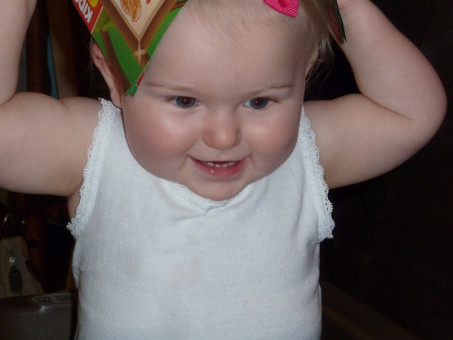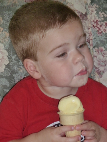 Enjoying an ice cream cone at Great-grandpa Les and Great-grandma Muriel's house.