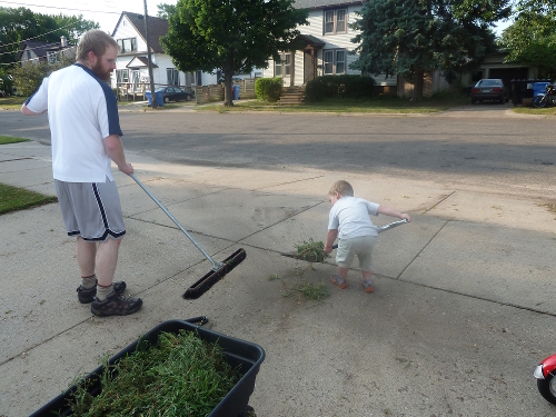 This week Daddy put me to work helping him clean up the weeds growing through the seams of our driveway (in case you are wondering, I begged to use the shovel):