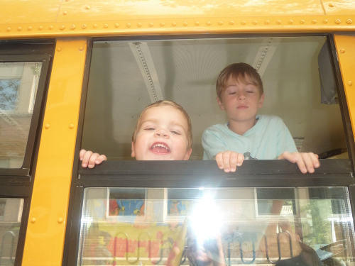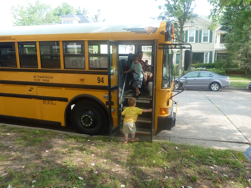 Me and Sawyer getting ready to ride the bus.