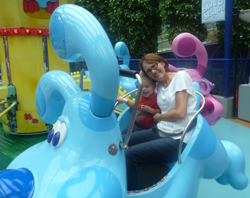 While Daddy was away, Mommy and I a lot of fun. First, we went to the amusement park at the mall with Grandma Gail.