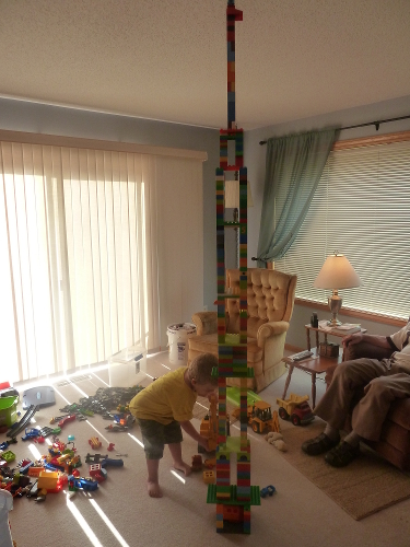 Mommy and I stayed with Great-grandpa Les and Great-grandma Muriel several nights while Daddy was gone. We played with LEGO and built towers and train tracks and had lots of fun.
