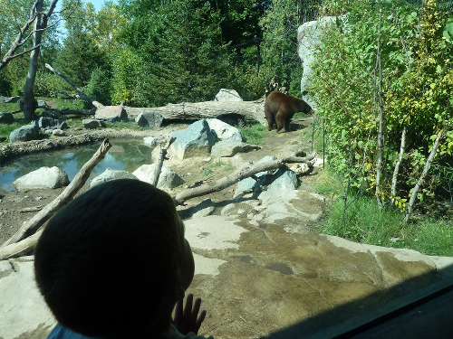 Saturday morning I went to the zoo with Daddy, Grandma Wynne and Grandpa Al. The weather was beautiful and the animals were much more active than usual - and they were out where they were easy to see. And there were babies! Baby porcupine, baby wolves, baby lynx, and baby snow monkeys - so many we didn't even get pictures of all of them. The grizzly bears were swimming and playing in their pool, right up by the glass - they were so much fun to watch!