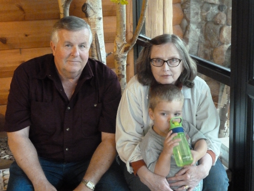 Taking a break with Grandpa and Grandma.