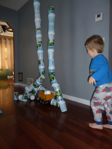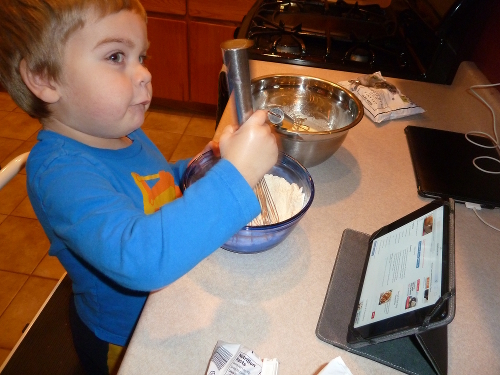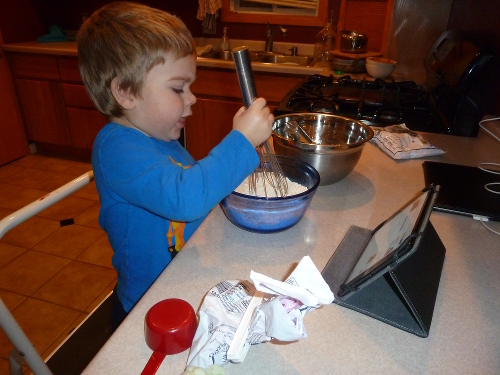 On Monday and Tuesday, Daddy and I played with LEGO and with cups and sand - and I jumped out of my tent, tripped, and gave myself a black eye by smashing my face into my play kitchen in my room. Ouch! It's getting better, though. Monday was also Daddy's birthday, so Mommy and I made him blueberry muffins as a treat.