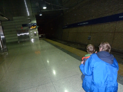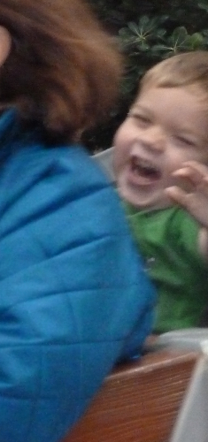On the bus. Mommy is just pretending to be excited. (She doesn't like the bus ride.)