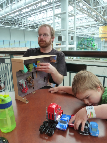 Wednesday morning we drove up to Kara and Josh's house. We walked through a snowstorm to get to the train, then went to the airport to get Kara and Josh's van - it was quite an adventure! After we got the van, we went to the mall and went on the rides and visited the LEGO store. The most exciting part was that I found Ms. Sally! I spent all my piggy bank money to buy a set of Cars toys with her in it.