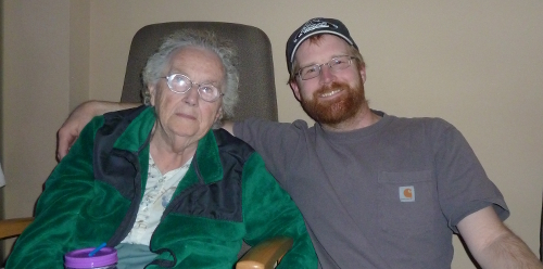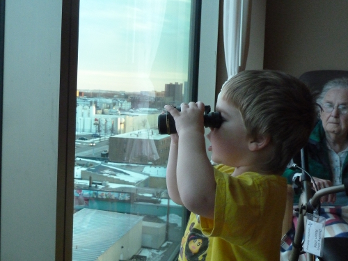 Sunday morning we packed up all our stuff and went home. Mommy stayed at the house and worked on her homework and Daddy and I went to get Duke from Grandma Wynne and Grandpa Al's house. Daddy and Grandma Wynne and I went to see Great-grandma Dorothy in her tower, and David and Diane were there, too!