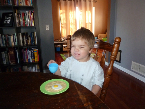 This week was pretty quiet around the old home place. Mommy worked on finishing up all her school work for the semester, I went to school, and Daddy went to work. Our big excitement came on Saturday, when we had a lot of visitors for the Children's Center Spaghetti Party to raise money for the science garden. GG, Great-grandpa Les and Great-grandma Muriel, and Grandma Wynne all came to go to the Spaghetti Party with us. Mommy made pumpkin cupcakes, brownies, vanilla mini-cheesecakes, and banana muffins to share with everyone at the party. During the day, I practiced setting the table amd making food in my kitchen.