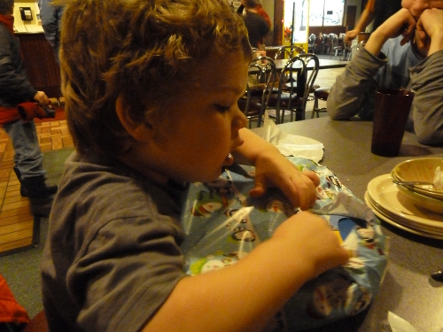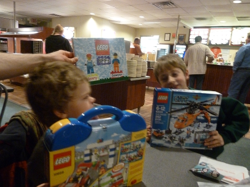 This week was Sawyer's birthday so we took him and Angie and his brother Carter out for supper. Mommy baked Sawyer a LEGO cake that was very blue - inside and outside! We gave Sawyer some LEGO for his birthday and he gave me some for Xmas - and he made a really cool picture of the two of us as LEGO guys.